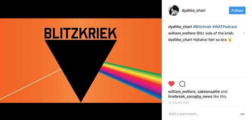 Self-promotion is vir my ’n baie uitputtende en angsbevange oefening, so ek probeer om dit ten minste fun te maak vir my en my luisteraars. Die cool ding van die Blitzkriek-campaign is dat ek nog nie een enkele persverklaring uitgestuur het nie. Slegs my WAT-podcast-luisteraars het geweet dat ek ’n nuwe album op pad het, omdat ek hulle sedert episode 99 begin vertel het daarvan. Ek het hulle ook gesê dat ek Blitzkriek-stickers gaan print, dat hulle Exit Through The Gift Shop moet kyk en as hulle sou wou deel raak van die Blitzkriek-beweging, moet hulle my e-mail en dan sal ek vir hulle stickers stuur wat hulle op strategiese plekke moet plak. Sodra hulle dit geplak het, moet hulle ook ’n foto neem en dit op sosiale media plaas met die hashtag #Blitzkriek. Analogue life meets digital life. Dis lekker geheimsinnig so op ’n niche-statement manier.