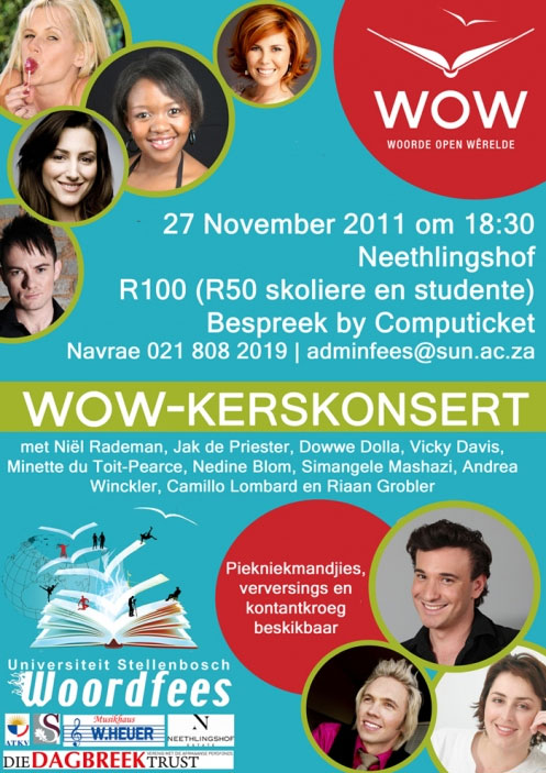 Die Woordfeeskantoor, vertel Melt Myburg, is baie trots op Fiona van Kerwel, die WOW-projekbestuurder. Sy is pas deur die Universiteit Stellenbosch met ’n rektorstoekenning vereer vir haar uitstekende werk met die WOW-projek. Naomi Meyer het Fiona uitgevra oor vanjaar se WOW-Kerskonsert.