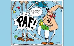 "One of the great sights in world literature. Obelix whacking a Roman soldier. Note the deft, nonchalant ease of the hit, the brisk follow-through of the right hand while the left is at ease, perching on the massive boar-filled girth."