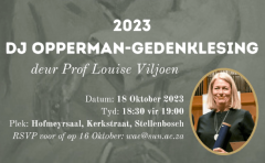 Alle belangstellendes word vriendelik uitgenooi na die driejaarlikse DJ Opperman-gedenklesing wat op 18 Oktober 2023 in Stellenbosch plaasvind.