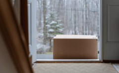 Kartondoos in die reën