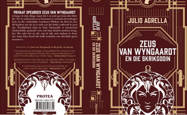 Die eerste Zeus-boek (Zeus van Wyngaardt en die godin van die jag) het by hierdie leser verbygegaan weens die ongewone en onbekende naam van die skrywer, die titel wat min weggee oor die karakter van die boek, asook die donker omslag wat nie veel sin maak voor jy die boek gelees het nie. Dit was ’n fout wat spoedig reggestel sal word. Julio Agrella skryf pragtige Afrikaans, die pretensieuse naam van die hoofkarakter en die onbekendheid van die term “skrikgodin” pas perfek by die verhaal in en die voorblad kom met duidelike leidrade, waarop die oplettende leser net moet ag slaan.